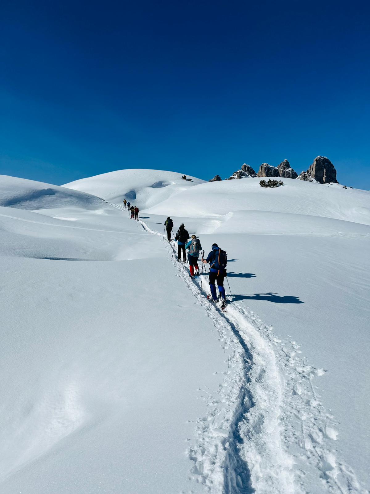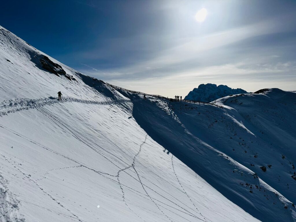 Sněžnicová túra na vrchol Dürrenstein - Pico di Vallandro (2 839 m) v národním parku Fanes-Sennes - 8 km, ↑ 890 m, ↓ 890 m. Alternativně méně náročná túra na vrchol Strudelkopf / Mont Specie (2 309 m).