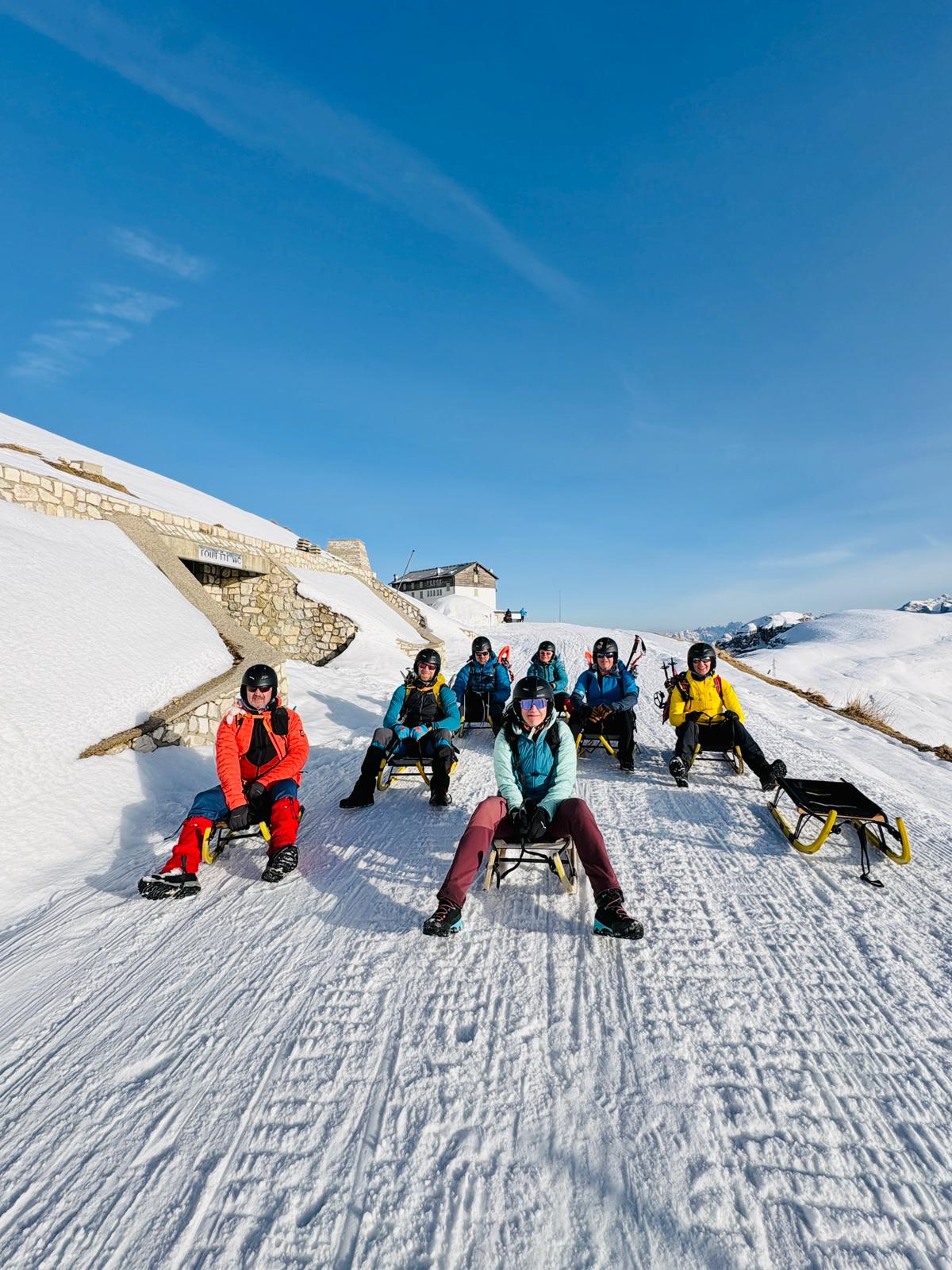 Výjezd na sněžných skútrech k Rifugio Auronzo & po túře sjezd na saních (cca 40 EUR)