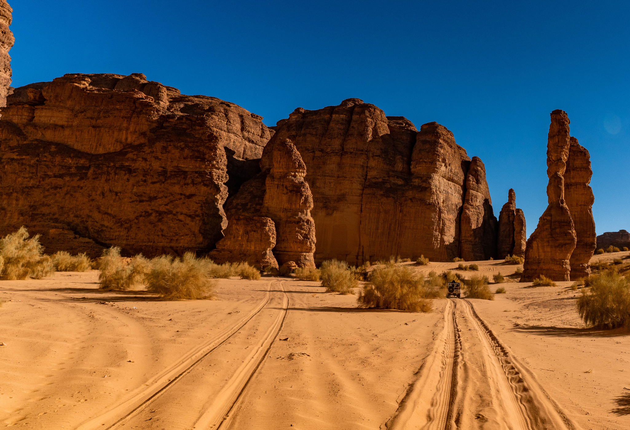 Přejezd do oblasti Tabuk a túra pískovcovou krajinou vádí Al Disah.