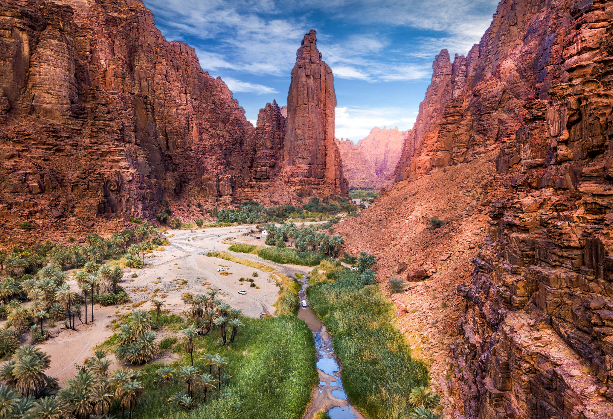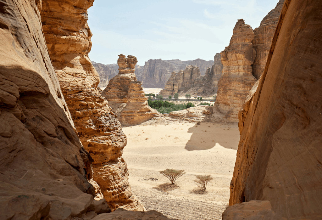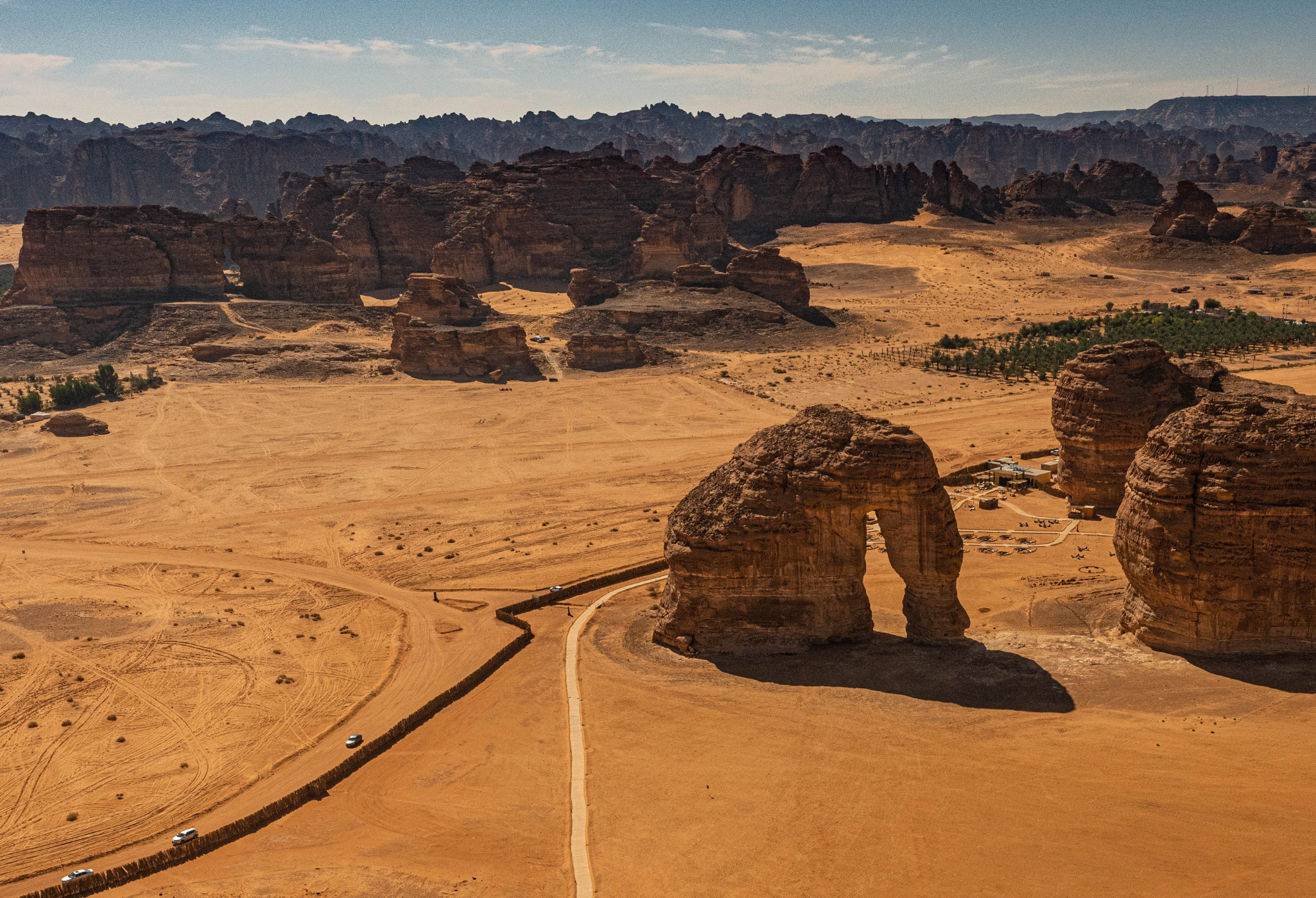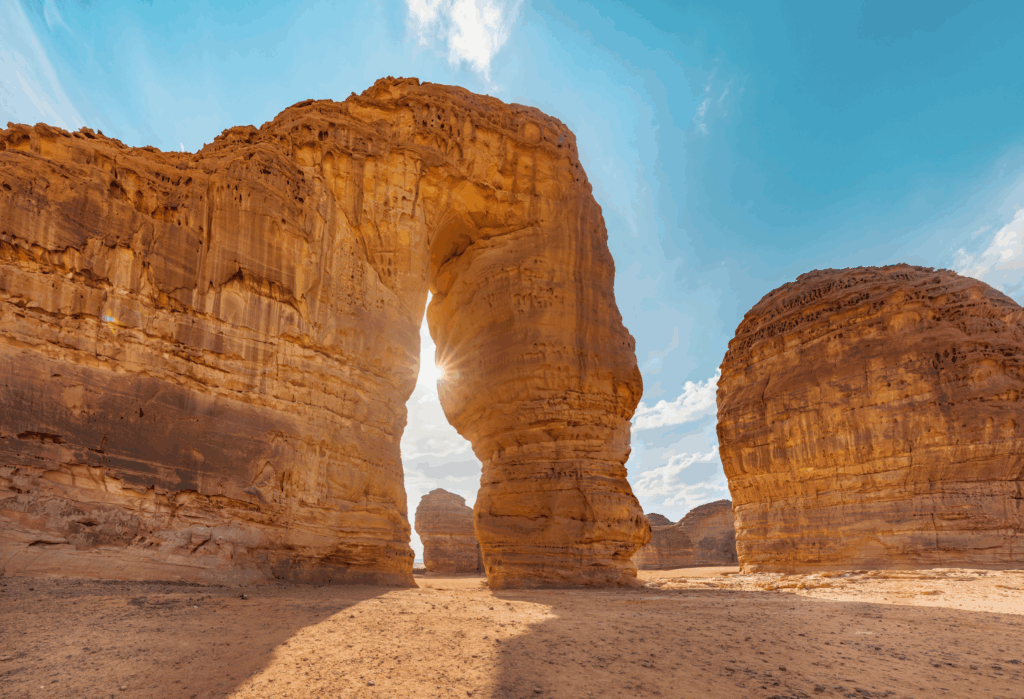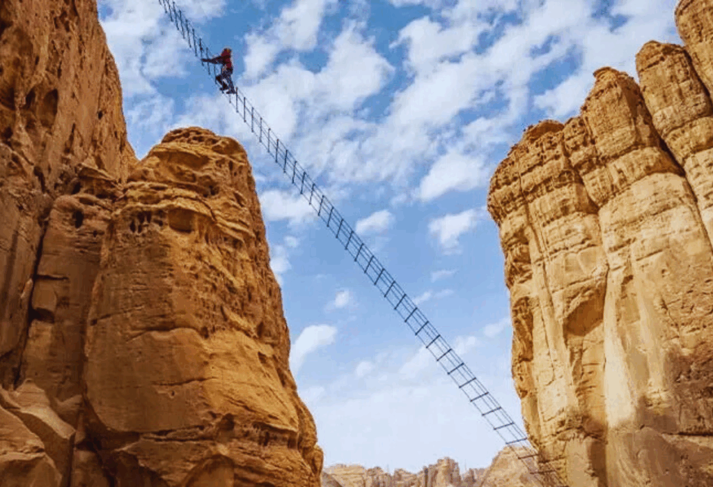 Přejezd do ikonického regionu Al Ula s pískovcovými útvary. Elephant Rock (Sloní skála) s výškou 52 metrů, prohlídka starého města a pro zájemce zajištěná cesta v kaňonu - AlUla via ferrata.